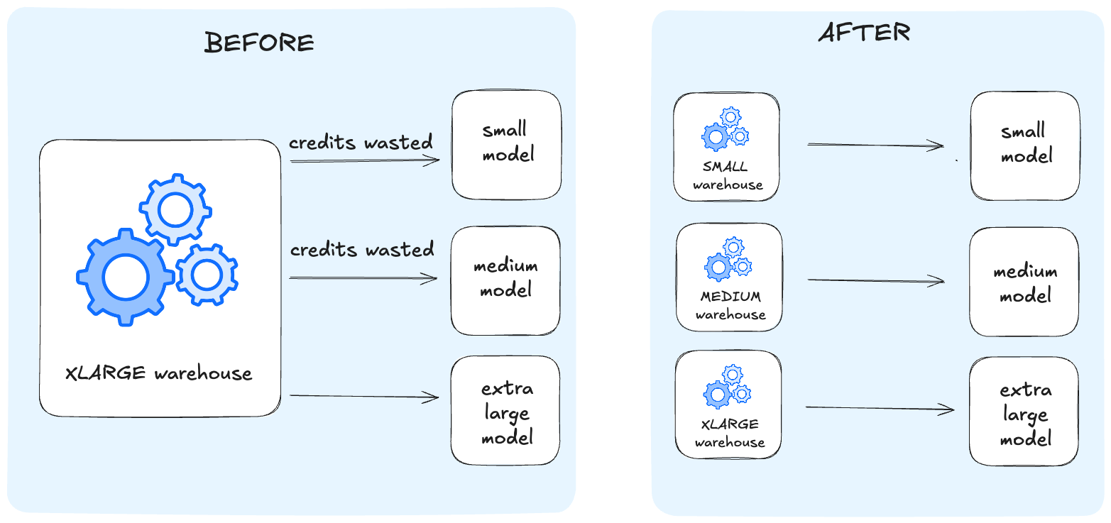 By sizing compute to the real workload of each model, Scott kept his dbt build performant without overspending.