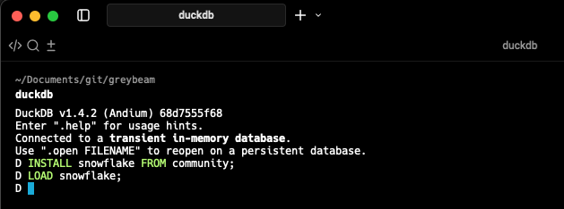 ls ~/.duckdb/extensions/<duckdb_version>/<duckdb_platform>/You should see: libadbc_driver_snowflake.so